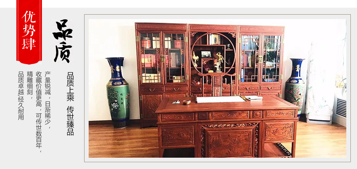 東陽(yáng)市大聯(lián)福林堂紅木家具廠座落于素有“東方好萊塢”之稱的國(guó)家AAAAA級(jí)影視旅游基地橫店影視城, 是一家集開發(fā)、設(shè)計(jì)、生產(chǎn)、銷售、服務(wù)為一體的綜合型企業(yè)。本公司匯集一批具有豐富生產(chǎn)經(jīng)驗(yàn)的能工巧匠,具有豐富的紅木家具設(shè)計(jì)生產(chǎn)經(jīng)驗(yàn)。本公司產(chǎn)品主要選用紫檀、花梨、酸枝、雞翅等優(yōu)質(zhì)紅木,并采用純天然蜂蠟飾面。經(jīng)過蒸煮、脫脂、烘干、定型等多道工序嚴(yán)格處理,福林堂紅木始終嚴(yán)格秉承“質(zhì)量第一”、“信譽(yù)至上”的經(jīng)營(yíng)理念,在繼承傳統(tǒng)工藝的基礎(chǔ)上,不斷創(chuàng)新,大力引進(jìn)先進(jìn)家具設(shè)備、烘干設(shè)備,實(shí)現(xiàn)了現(xiàn)代生產(chǎn)工藝與傳統(tǒng)表現(xiàn)手法的有機(jī)相融。