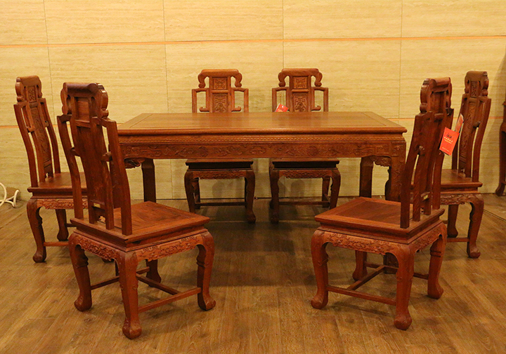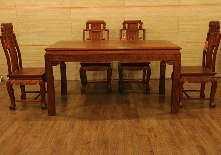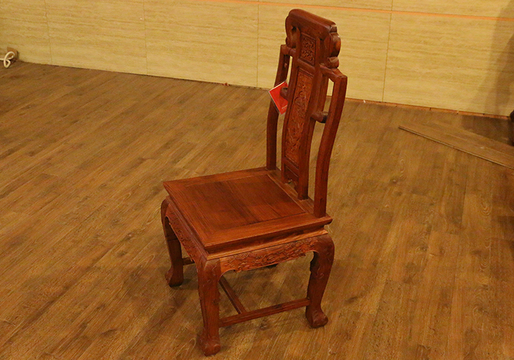 在自己實(shí)際的日常生活當(dāng)中,反而凳子用的較為普遍,一是感覺(jué)使用起來(lái)比較方便隨意,二是不用像椅子那么占用地方空間。印象當(dāng)中餐椅用到較多的場(chǎng)所,多是些高檔的餐館酒店禮堂,那一張張大大寬敞的圓形餐桌再環(huán)繞搭配上一面面靚麗白凈的椅靠背板配之的餐椅,多數(shù)帶有些歐式風(fēng)格家具的韻味,頗顯莊園親切之感,有些使人困頓閑暇陶醉恬適之意。而在那些正式莊嚴(yán)的場(chǎng)合,譬如舉辦婚禮、生辰大壽時(shí)亦或是為了迎接遠(yuǎn)方來(lái)賓,餐椅的選擇和搭配就更顯得重要和講究了,而今天,同樣筆者要給大家介紹的一款餐椅就是,優(yōu)質(zhì)緬甸花梨(學(xué)名:大果紫檀)制作的松鶴延年餐椅,一起來(lái)看看吧: