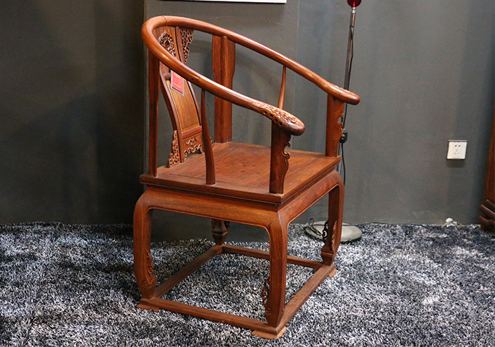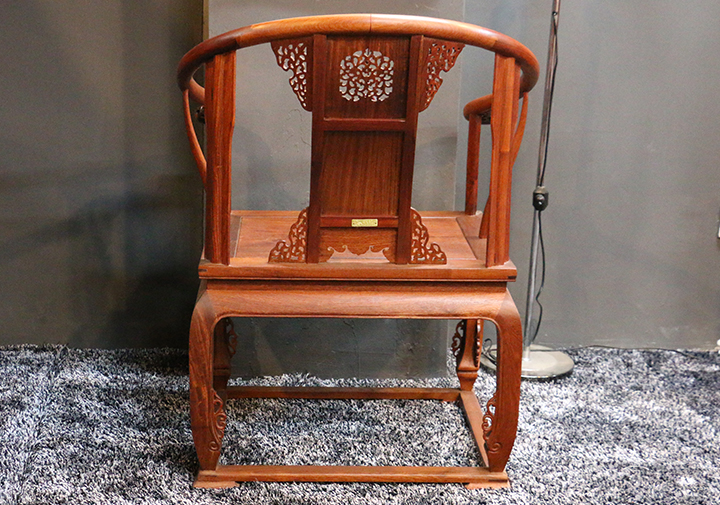 皇宮椅是中華民族木制家具文化的杰出代表,承載著中華民族的藝術(shù)智慧和厚重文化底蘊(yùn)。皇宮椅的制作要求較為嚴(yán)格,必須全部榫接結(jié)構(gòu),環(huán)環(huán)相扣。雕刻部分要求精美而不影響人體的舒適需要,讓人端坐其上,盡顯主人“內(nèi)圣外王”的非凡氣度。