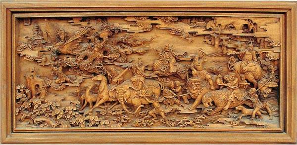 我國的木雕藝術起源于新石器時期,到了秦漢兩代,木雕工藝已漸漸趨于成熟,繪畫、雕刻技術精致完美。唐代是中國工藝技術大放光彩的時期,木雕工藝也日趨完美。許多保存至今的木雕佛像,是中國古代藝術品中的杰作,具有造型凝練、刀法熟練流暢、線條清晰明快的工藝特點,成為當今海內外藝術市場上的“寵兒”。明清時代的木雕品題材,多見為生活風俗、神話故事,諸如吉慶有余、五谷豐登、龍鳳呈祥、平安如意、松鶴延年等木雕作品,深受當時社會歡迎。