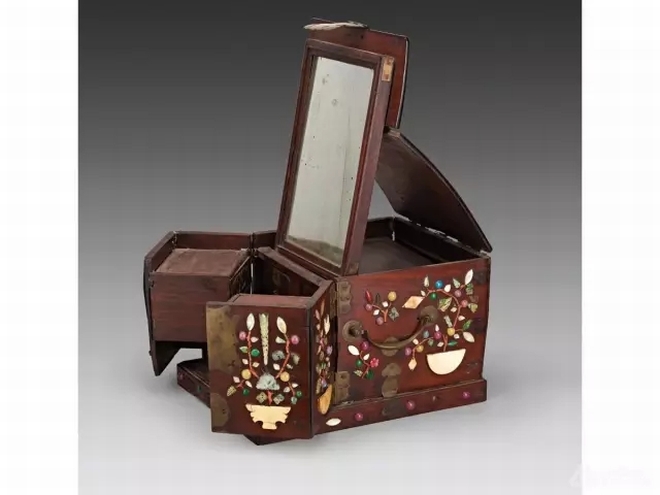 梳妝打扮是上至太后妃嬪,下至小家碧玉都喜愛的一種本能。而作為皇室,太后、妃嬪們所用的器物又更高端的多。北齊的胡太后,讓沙門靈昭,制造了七寶鏡臺(tái),三十六個(gè)門戶各有一婦人,手中各自拿著鎖匙,只要輕碰其中一個(gè)門戶,這三十六戶一時(shí)全都自行關(guān)閉;若抽出其中一關(guān)的鎖匙,那么其余諸門,盡皆開啟,婦人都出現(xiàn)戶前站立。唐朝的馬登封也曾為皇后制妝臺(tái),進(jìn)退、開合全自動(dòng),都不須人力,巾櫛(梳篦的總稱)、香粉,依次遞送、循序進(jìn)獻(xiàn)。看見的人,都認(rèn)為是鬼斧神工。